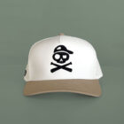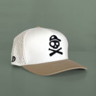 Minimal. Menacing. Made to move. This hat (Off white & tan bill) delivers sharp contrast and high performance in one fearless design. Featuring our skull-and-crossbats logo up front and breathable perforated panels in back, this hat doesn’t just show up—it takes over.